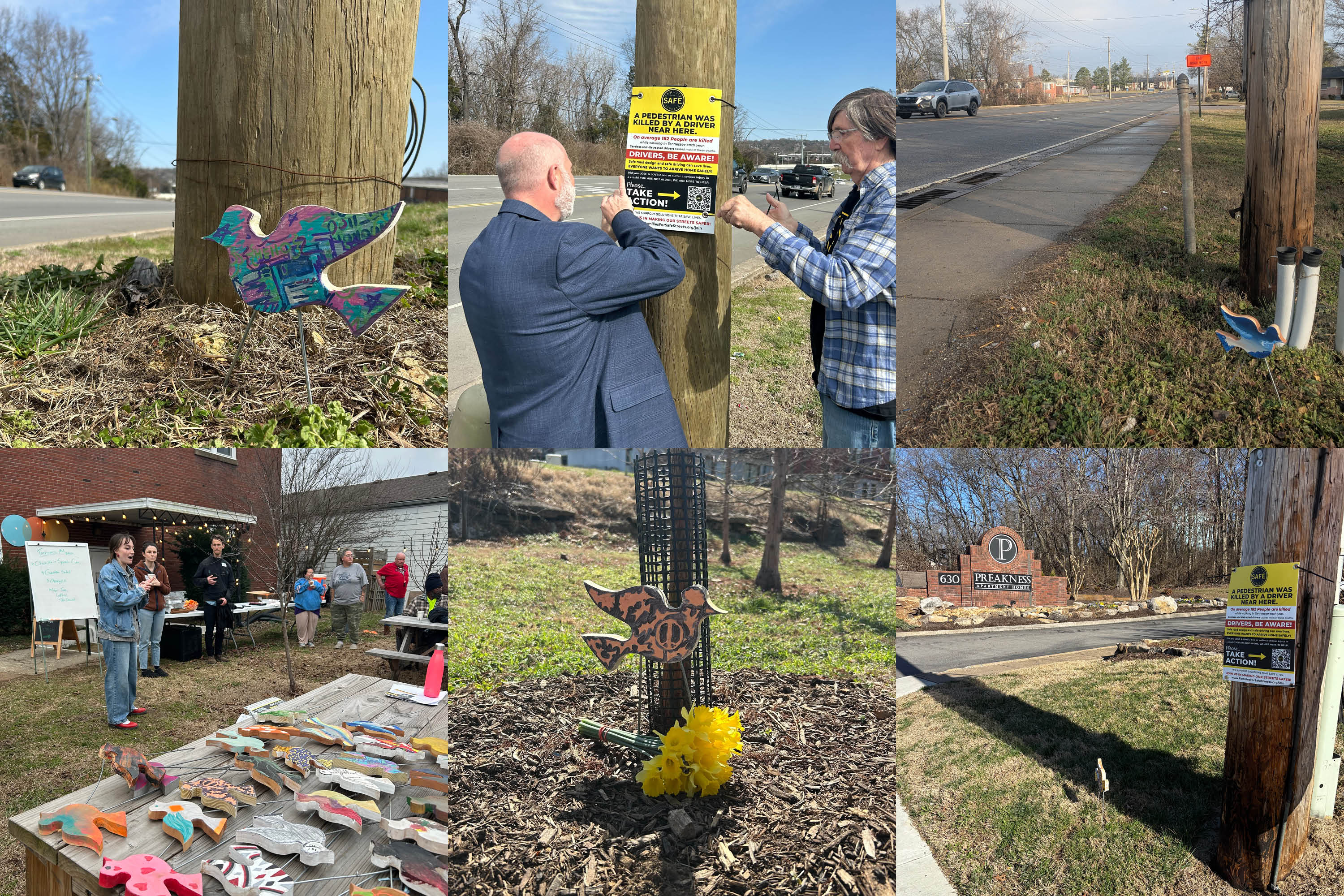 Instead of having one centralized memorial, we wanted to work with community members to place memorials at each fatal crash site and show how fatalities touch every corner of our city. Walk Bike Nashville hosted a small gathering on Haywood Lane to remember the three pedestrians who were killed there last year.